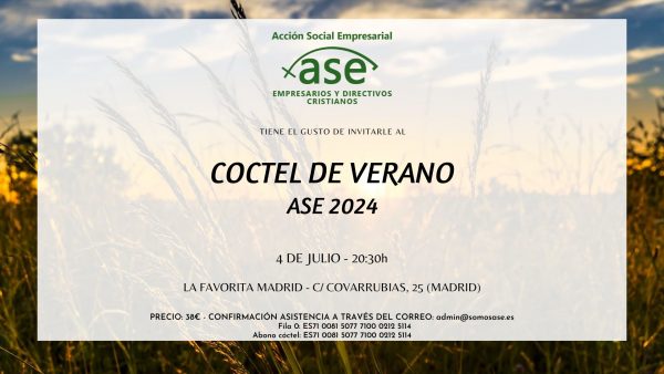 El próximo día 4 de julio a las 20:30 horas organizamos un encuentro, para confraternización, de todos aquellos que formamos parte del “mundo ASE”: nuestro Cóctel de verano