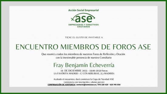 Queridos amigos, miembros de los Foros de Reflexión y Oración de ASE-Acción Social Empresarial