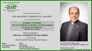 Queridos socios y simpatizantes de ASE-Acción Social Empresarial, nos complace convocaros al almuerzo de referencia, vigésimo cuarto ya en esta serie de encuentros, animándoos a asistir dada la relevancia del ponente y la importancia de reforzar los principios y los valores cristianos en el mundo de la empresa. El almuerzo tendrá lugar en Casa Azcona […]
