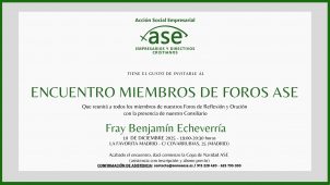 Queridos amigos, miembros de los Foros de Reflexión y Oración de ASE-Acción Social Empresarial El próximo día 10 de diciembre, tendrá lugar el encuentro de todos los miembros de los Foros de Reflexión y Oración de Empresarios y Directivos de ASE, Dios mediante, a las 19:00 horas hasta las 20:30 horas, en el palacete de La Favorita Madrid, […]